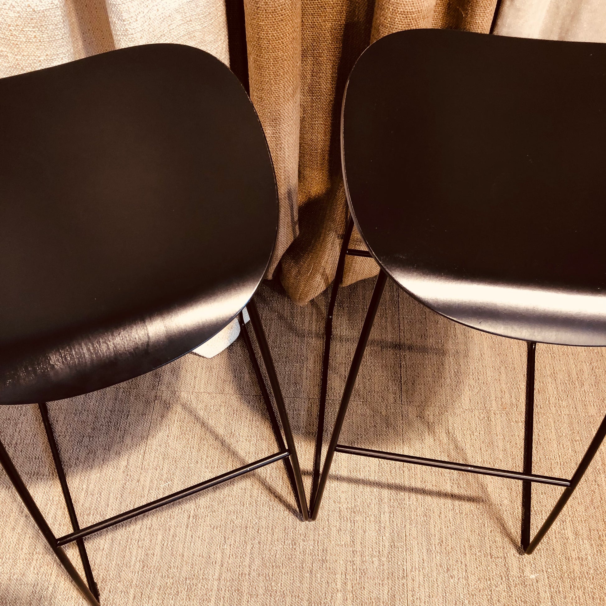 Barkrukken set van 2 - zwarte zit met zwarte metalen onderstel