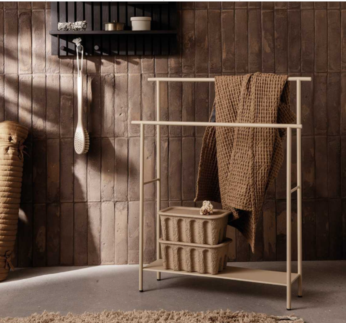 De eenvoudige maar functionele ontwerpen zijn gemaakt van gepoedercoat metaal en zijn roestbestendig, dus ideaal voor gebruik in vochtige ruimtes. Aan de Dora Towel Stand kan je meerdere handdoeken tegelijk ophangen.
