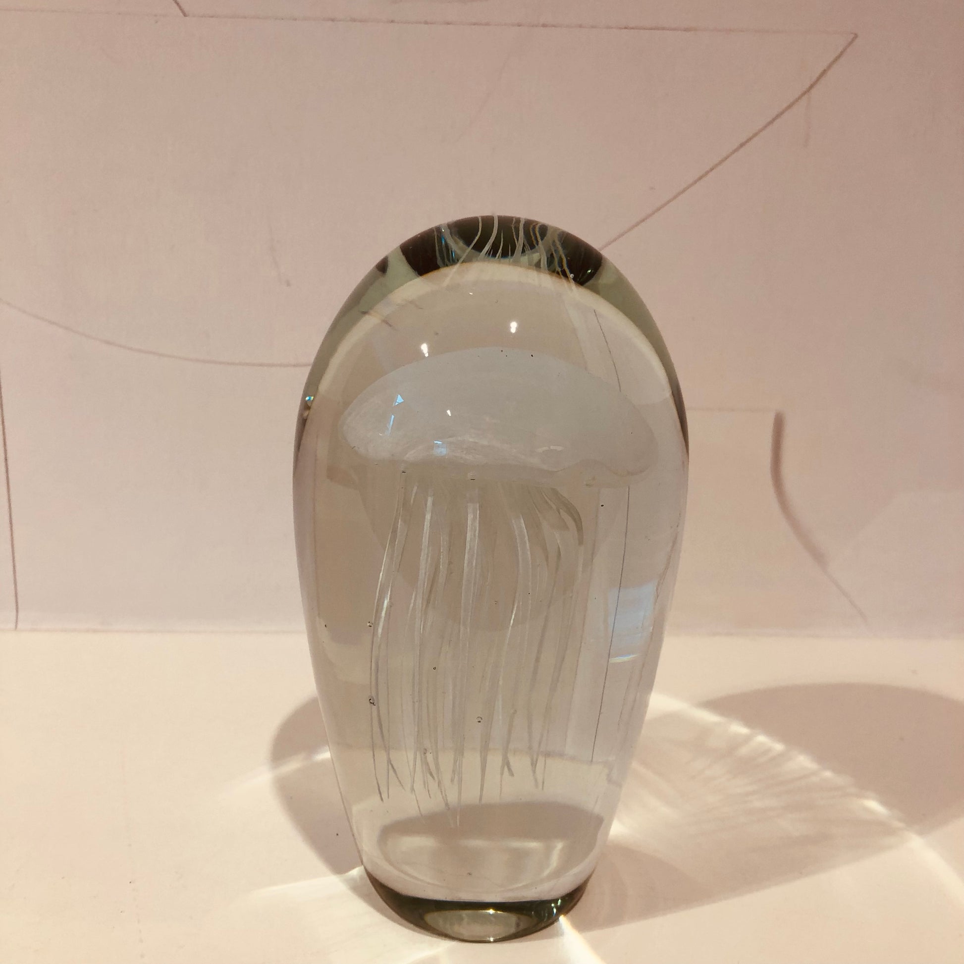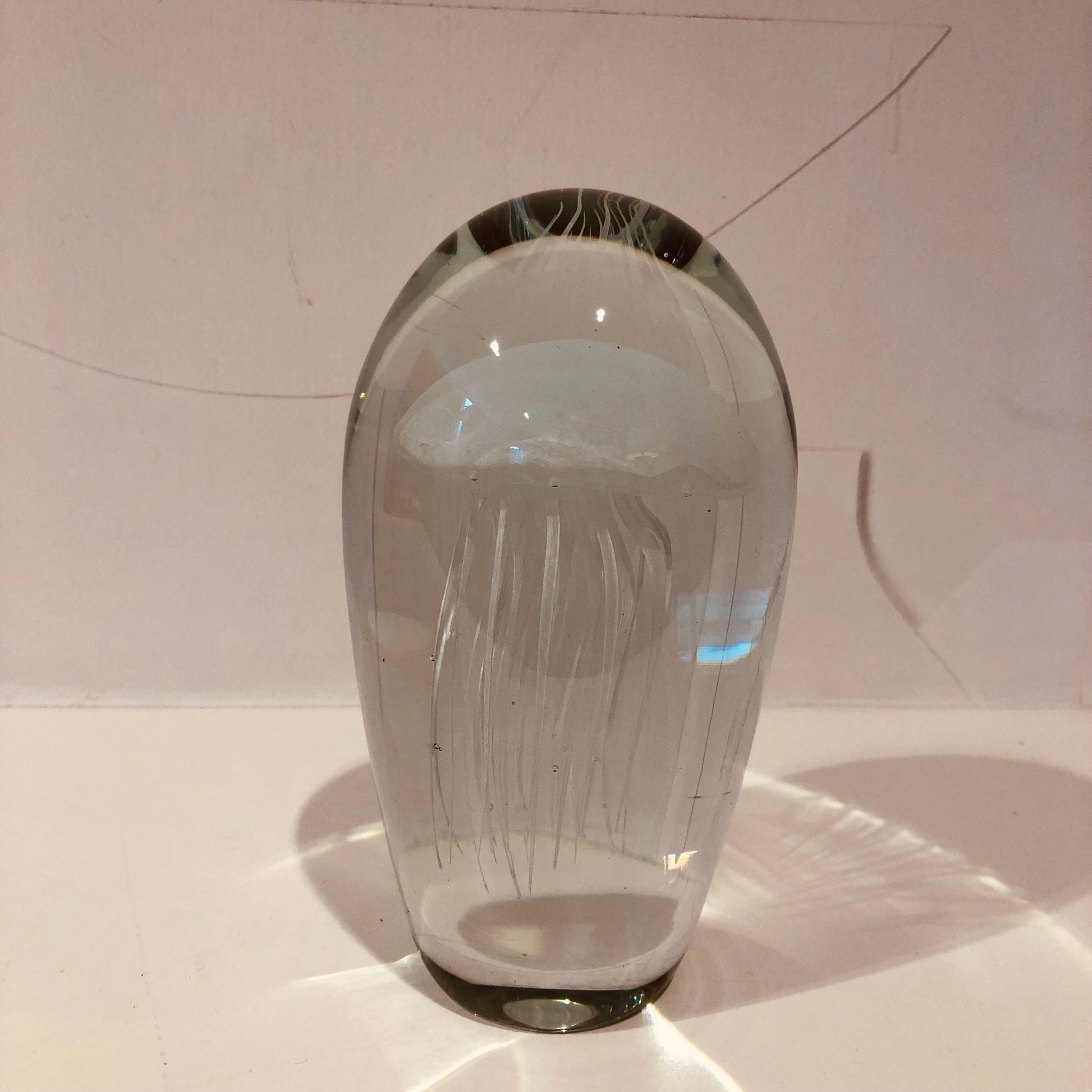 Presse-papier, mondgeblazen. De kwal neemt tijdens de dag het zonlicht op, om in de avonduren een magisch, fluorescent licht te geven.